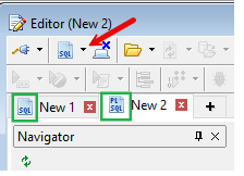 Note: Modify both SQL and PL/SQL Editor tab types. By default, SQL tab type is opened. The type of tab is indicated by the tab icon. e.g. the icon will show either SQL or PL/SQL to reflect which type of tab.